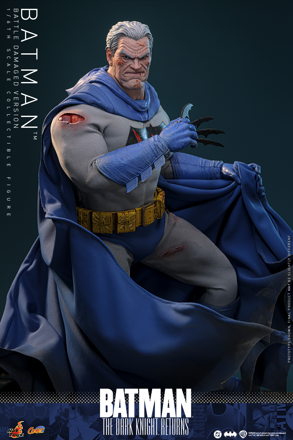 Aby uczcić tę rocznicę, Hot Toys z radością ogłasza wprowadzenie na rynek figurki kolekcjonerskiej Batmana (wersja Battle Damaged) w skali 1:6. Figurka zawiera nowo opracowaną rzeźbę głowy Bruce’a Wayne’a z ruchomymi gałkami ocznymi i śladami krwi, które oddają cierpienia związane z walką. Dodatkowa niebieska głowa Batmana z maską jest wyposażona w trzy wymienne dolne części twarzy, co pozwala kolekcjonerom odtworzyć sceny prosto z kart kultowego komiksu. Figurka ma specjalnie zaprojektowane muskularne ciało, które ma oddawać siłę i fizyczność starszego, zaprawionego w bojach Mrocznego Rycerza. Sześć wymiennych rąk w rękawiczkach z plamami krwi pozwala na przyjęcie szerokiej gamy dynamicznych pozycji bojowych, w tym nowo opracowanych pięści zniszczonych w walce, rąk w geście otwarcia i rąk trzymających broń.