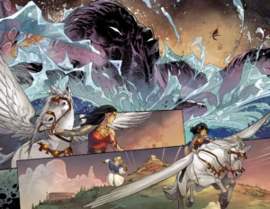 Pierwsza saga „Dark Knights of Steel” na nowo ukształtowała świat oparty na przepowiedniach, władzy i strachu. Przybycie Rodu El z gwiazd wywołało sojusze i rywalizacje w trzech wielkich królestwach, wciągając monarchów, wojowników i legendy w wojnę, której nikt z nich tak naprawdę nie rozumiał. Dopiero gdy opadł kurz, wyszła na jaw prawda: zmiennokształtni najeźdźcy z ukrycia wywołali ten konflikt. Zjednoczeni ciężko wypracowanym zaufaniem, Elowie, Amazonki i Królestwo Burz utworzyli ligę – nieświadomi, że w ich szeregach czai się jeszcze głębsza zdrada.