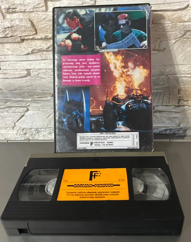 Ani ustawa antypiracka, ani potężna machina Warnera nie były w stanie tak szybko zatrzymać prężnie rozwijających się na naszym rynku pirackich dystrybutorów. Podczas gdy Warner Home Video postanowiło zarobić na głośnej premierze trzeciego filmu o Mrocznym Rycerzu i wznowiło pierwszego Batmana (lektorem w tym wydaniu został Władysław Frączak, który czytał tekst przetłumaczony przez Piotra Zielińskiego), piracki dystrybutor z Krakowa, Focus Film, nie zwlekał i jeszcze przed końcem 1995 roku wprowadził do sprzedaży własne wydanie Batman Forever (w dużym opakowaniu i z amatorsko wykonaną okładką). Było to ostatnie znane mi pirackie wydanie kasetowe z Batmanem na naszym rynku. Poniżej zdjęcia między innymi tej perełki: