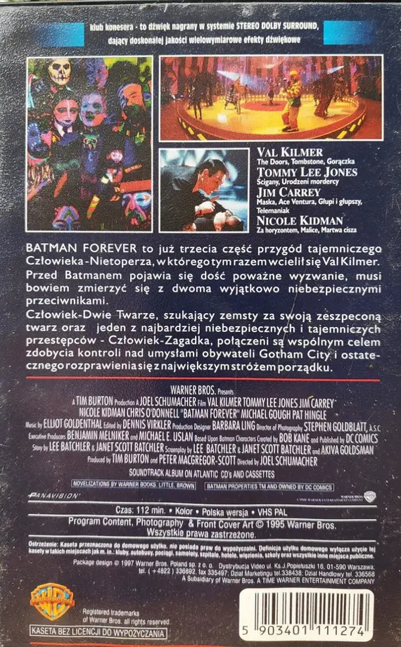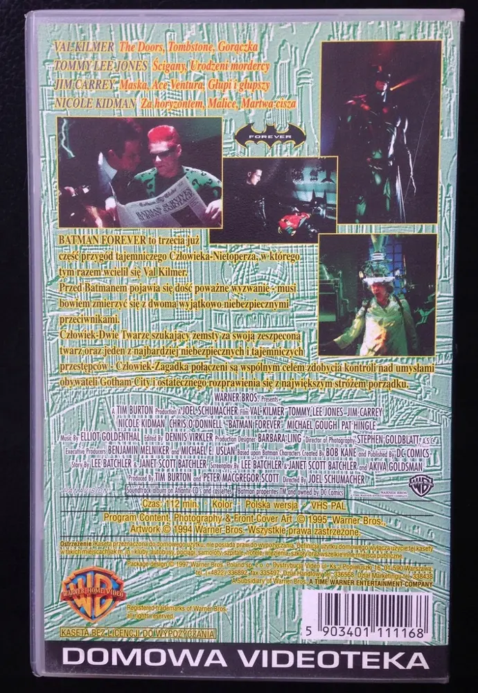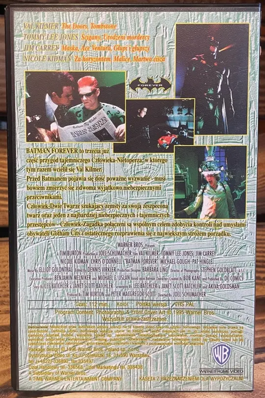 W kolejnym roku Warner przeprowadził własną ofensywę. 28 marca dystrybutor do swojego katalogu dodał dwa OFICJALNE wydania Batman Forever (standardowe oraz pod szyldem „Domowa videoteka” przeznaczone dla wypożyczalni – w kwietniu to wydanie wspięło się na 13. miejsce najczęściej wypożyczanych filmów na kasetach video w naszym kraju, ale już miesiąc później spadło na koniec trzeciej dziesiątki). Lektorem w filmie Joela Schumachera również był Władysław Frączak.