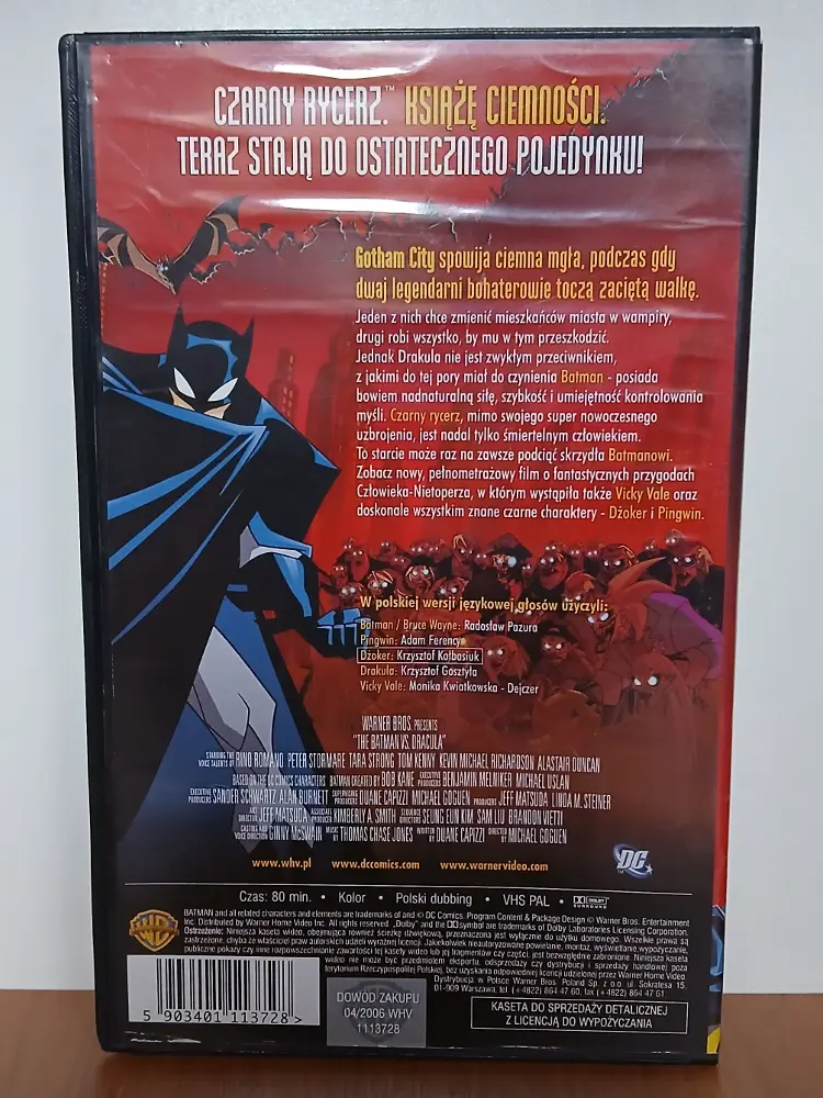 21 kwietnia 2006 roku Warner Home Video zarówno na DVD, jak i na kasetach VHS w cyklu „Kino dla dzieci” wydało pełnometrażowy film animowany Batman kontra Drakula, będący spin-offem serialu The Batman (2004-2008). Ta 80-minutowa animacja wydana z dubbingiem (produkcji Master Film na zlecenie Warner Bros., w którym w roli głównej wystąpił Radosław Pazura) pozostaje ostatnim wydanym na VHS Batmanem, a także – tu ciekawostka ode mnie – ostatnią oryginalną kasetą VHS jaka trafiła na regał w moim domu rodzinnym.