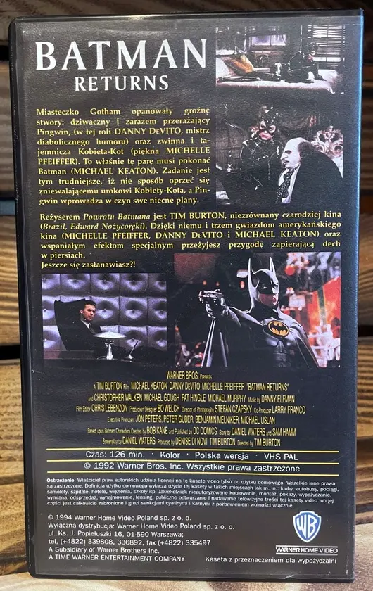 Rok 1994 to już czasy nowego dystrybutora na naszym rynku – Warner Home Video Poland Sp. z o.o. Jednymi z pierwszych wydań WHV w Polsce były Powrót Batmana (tym razem wydany już oficjalnie w marcu tegoż roku) oraz animowany Batman: Maska Batmana. Film Tima Burtona otrzymał bardziej profesjonalną okładkę oraz nowe tłumaczenie autorstwa Tomasza Beksińskiego czytane przez Leszka Sznytera. Batman: Mask of the Phantasm również trafiło do sprzedaży w wersji z lektorem (udźwiękowienie: Paanflim Studio Warszawa, tekst: Jacek Mikina, czytał: Maciej Gudowski). Oba filmy wydano w standardowych opakowaniach o wymiarach 20,1 x 12 x 2,9 cm.
