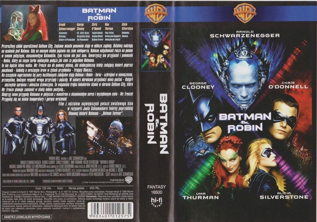 Batman i Robin zadebiutował na naszym rynku VHS w styczniu 1998 roku. Niesławny sequel Joela Schumachera sprzedawany był osobno, lub w pakiecie z innym tytułem Warner Bros. Z tego powodu w sieci można znaleźć dwa warianty okładki, ale pod oboma kryła się dokładnie taka sama kaseta, a na niej film w wersji z dubbingiem przygotowanym pod premierę kinową. Według danych z tego miesiąca, czwarty Batman stał się dużym hitem sprzedaży hurtowej ustępując jedynie Anakondzie wydanej przez ITI. Nieźle radził sobie również w wypożyczalniach, jednak nie stał się hitem sprzedaży detalicznej, ani razu nie łapiąc się do piętnastki najczęściej kupowanych filmów miesiąca.