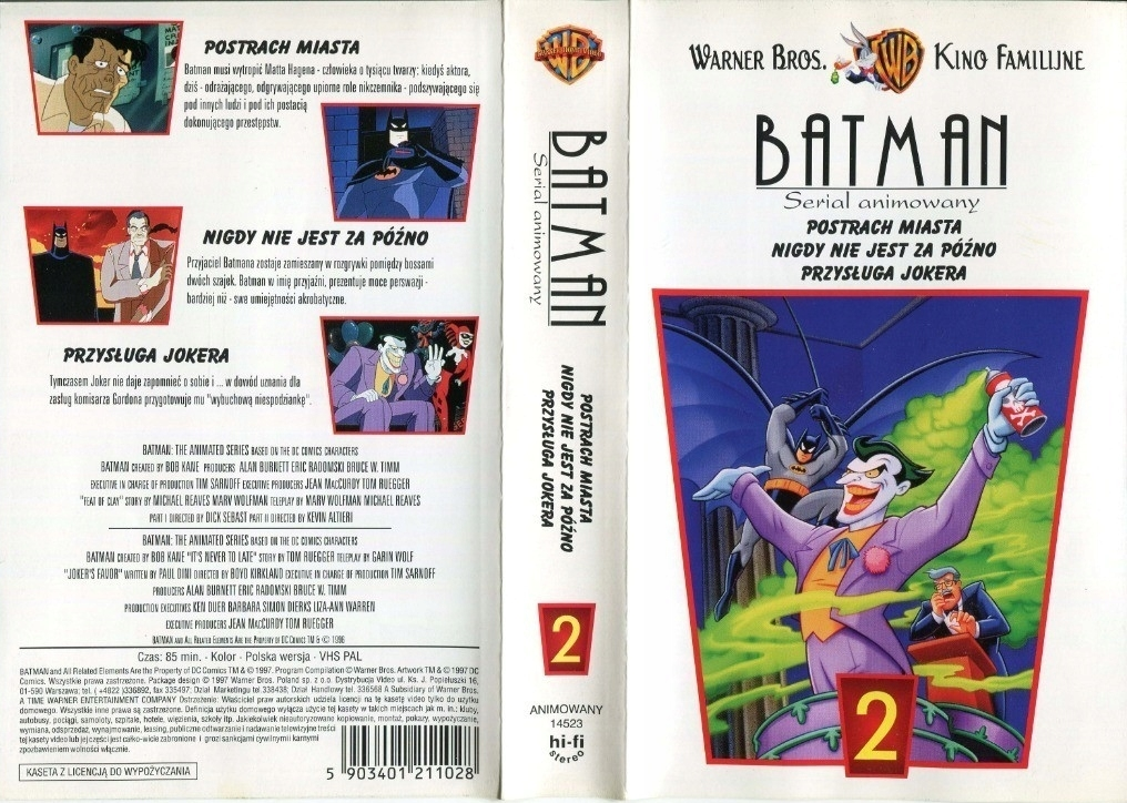 Poza produkcją kinową, Warner wydał także trzy kasety z wybranymi odcinkami popularnego serialu animowanego o Batmanie (po cztery epizody na każdej z nich). Lektorem w tym wydaniu był Janusz Kozioł (poniżej clip jednego z odcinków).