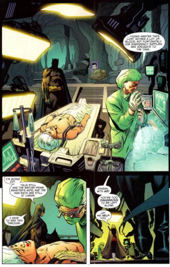 Batman z przerażeniem wbiega do jaskini i zauważa Robina całego poobijanego i nieprzytomnego. Na szczęście Tim resztkami sił zdołał wcześniej zatamować krwotok, dzięki czemu przeżyje. Nietoperz znajduje również Alfreda zamkniętego w jednym z pokoi w rezydencji. Batman postanawia odnaleźć Talię i uratować żonę premiera Wielkiej Brytanii. Zważywszy, że Damian jest zbyt niebezpieczny by go zostawiać samego bez nadzoru z Alfredem i Timem, bohater zabiera go ze sobą. Syn, chcąc pokazać ojcu, że można na nim polegać wyjawia, że Talia znajduje się obecnie w Gibraltarze. Batman i Damian udają się na spotkanie z Talią rakietą, którą Wayne trzymał ukrytą pod rezydencją. W tym samym momencie Talia wraz ze swoją armią Ninja Man-Batów atakuje Gibraltar. Mroczny Rycerz i Damian wspólnie rozprawiają się z hordą potworów. Jednocześnie żona premiera ucieka z pola walki podstawioną motorówką.