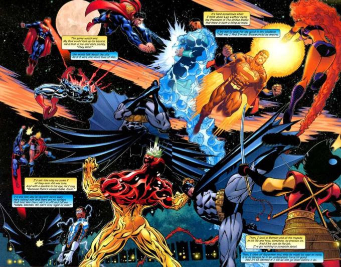 Kwatera główna JSA. Mr Terrific dostał telefon od Wonder Woman z prośbą o pomoc w powstrzymaniu Supermana i Batmana, gdyż ta nie chce wywołać w szeregach JLA III Wojny Światowej. Poza tym, po wydarzeniach w Tokio, Luthor nie zawaha się użyć tego faktu przeciw nim i całej społeczności superbohaterów. Terrific wyznacza Shazama i Hawkmana, by pokonali ich i dostarczyli Luthorowi.